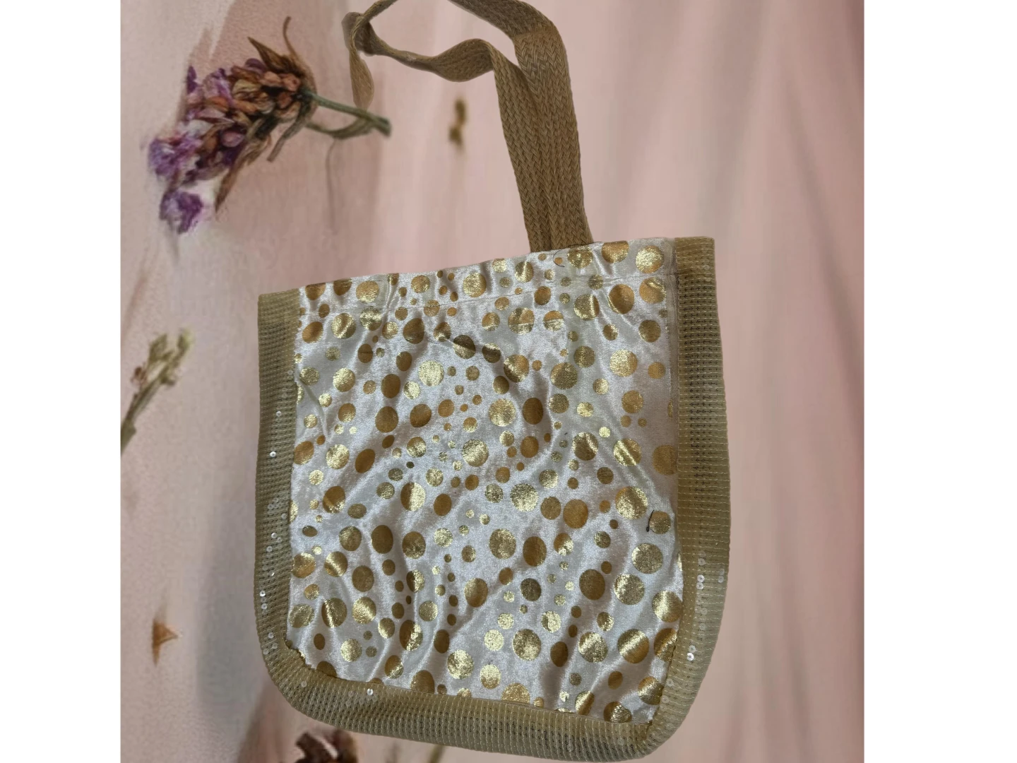Altın Sarı Yuvarlak Desenli Çanta