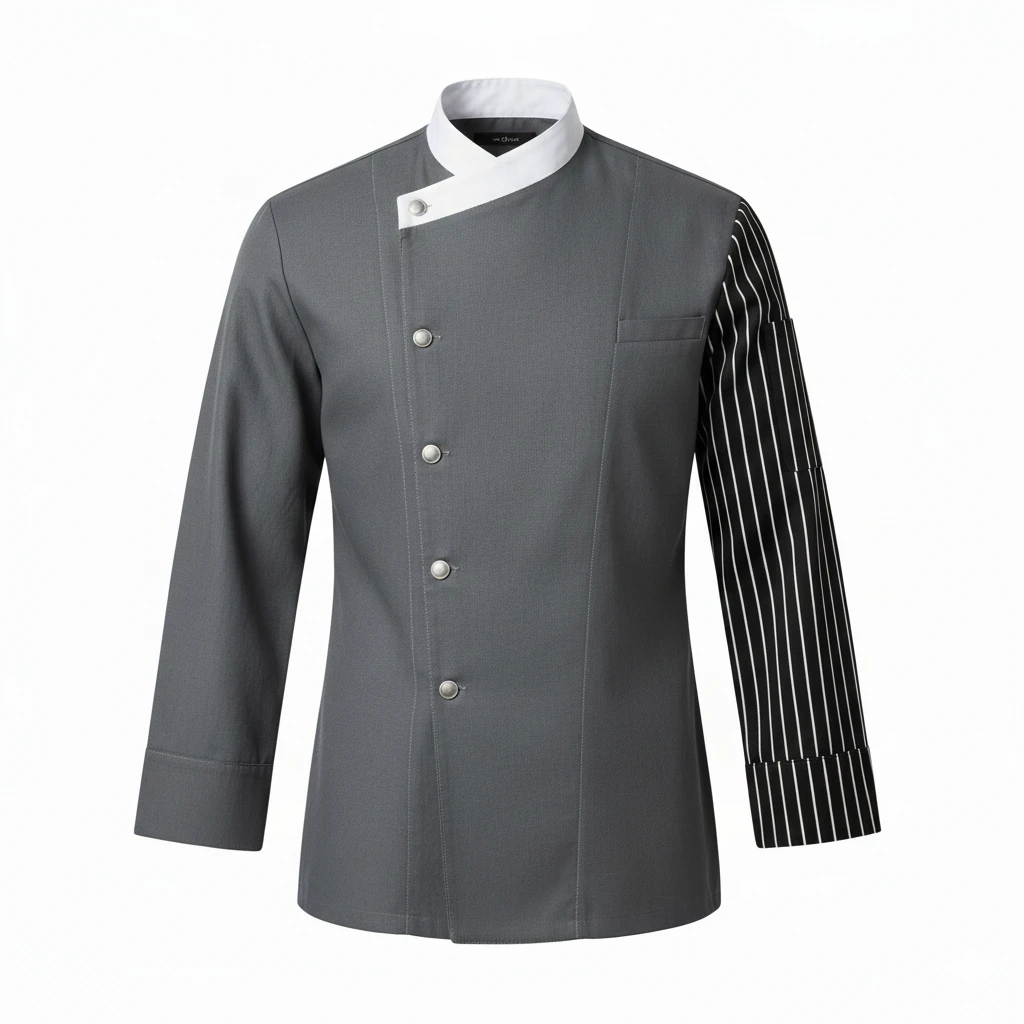 Aşçı Forması Tek Kollu Çizgili Siyah Beyaz Desen Keten Kumaş