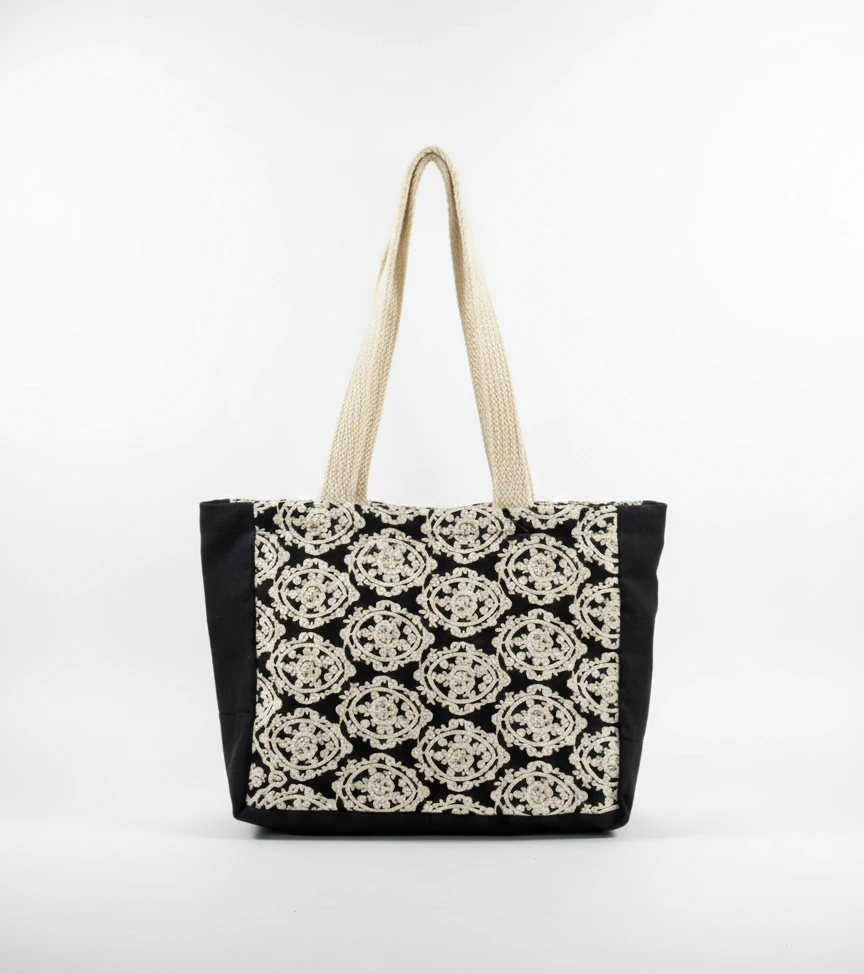 Beyaz Dantelli Keten Çanta