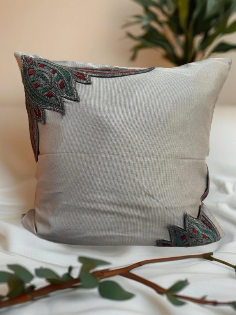 Doğal keten kumaş üzerine zarif dantel detaylarıyla tasarlanmış şık kırlent. 45x45 cm ölçüsünde, sade ama dikkat çekici bir görünüm sunar. El işçiliğiyle hazırlanmış özel bir parçadır. Dekorasyona zarif bir dokunuş katmak isteyenler için idealdir.