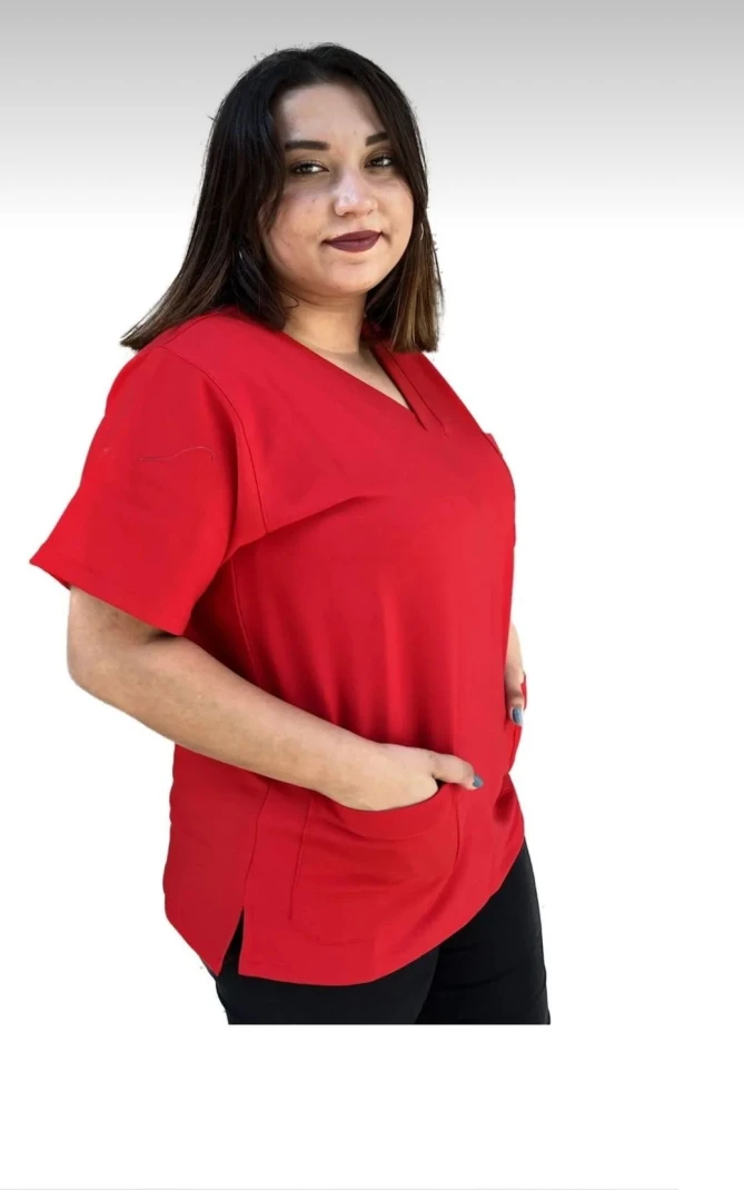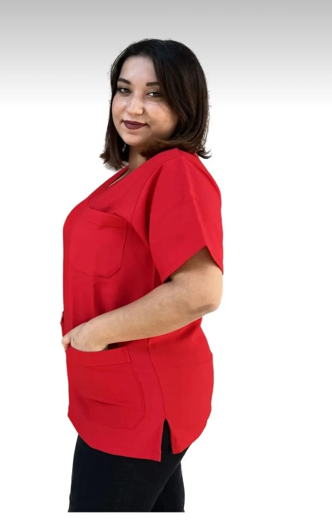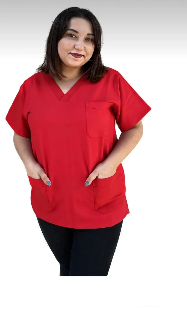 Likralı Sade 3 Cepli Hemşire Önlüğü Üstü  Kırmızı