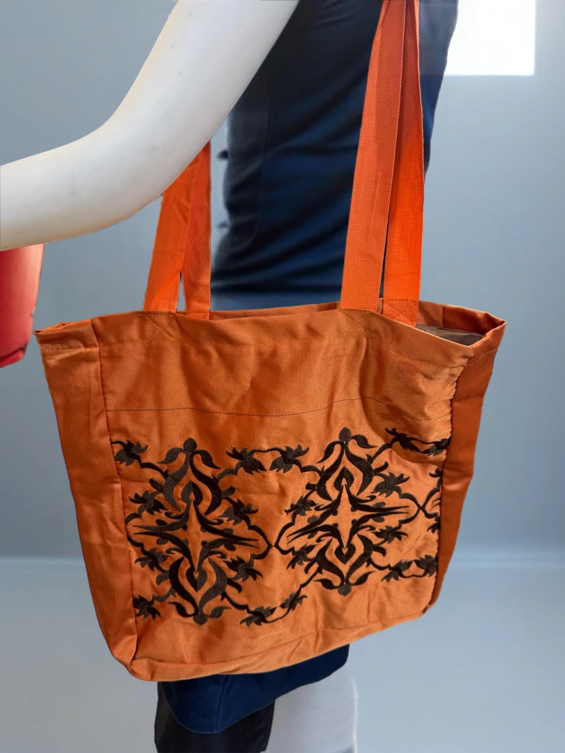 Turuncunun enerjisini, siyahın asil duruşuyla bir araya getiren bu dantelli çanta; dikkat çekici tarzıyla fark yaratmak isteyenlere özel.